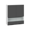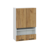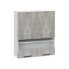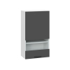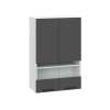 Стеклянные вставки делают модуль привлекательнее и позволяют рассмотреть содержимое не открывая дверцу. Шкаф отлично подходит для размещения посуды, фарфора, фужеров и декоративных ваз.